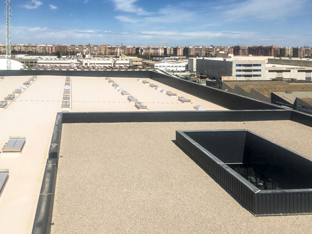ALMACÉN VENTA ONLINE EN VARA DE QUART (VALENCIA) AÑO 2018 ++++ 5.300 m2 de cubierta deck acabada en lámina sintética TPO de 1,8mm. Iluminación cenital a base de 22 claraboyas de policarbonato celular. 4.800 m2 de cerramiento de fachada de panel sándwich. 700 m2 de cerramiento de fachada de chapa microperforada. 800 m2 de cubierta formada por cubos de policarbonato celular de 16mm.